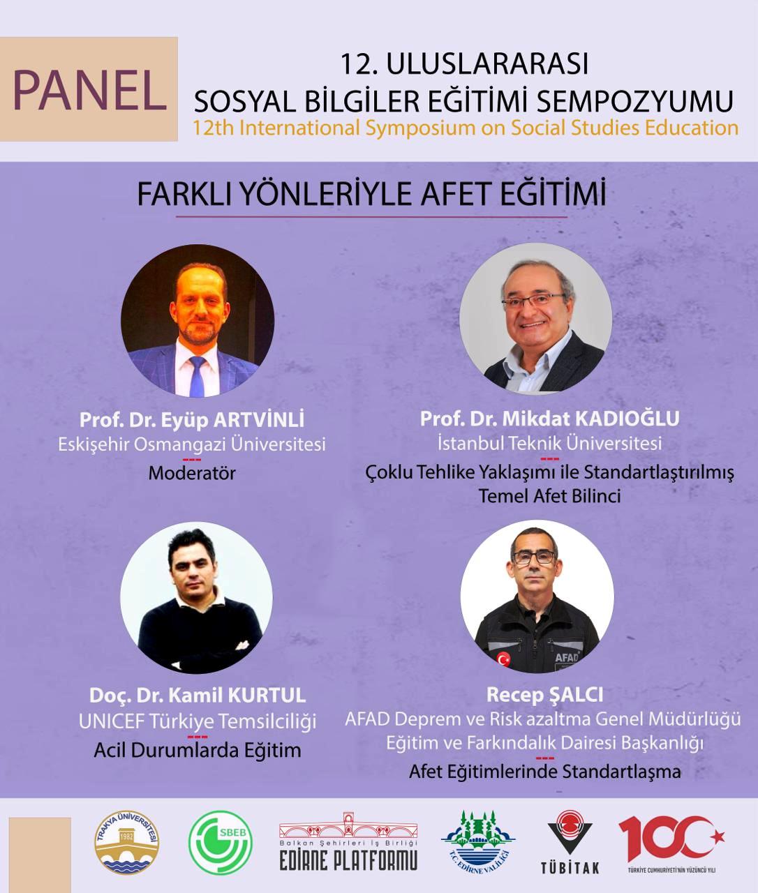20 Mayıs 2024 tarihinde Edirne’de gerçekleştirilen USBES kapsamında, “Afet gelmeden önceki en büyük sığınağımız aldığımız eğitimdir” bakış açısıyla AFAD Eğitim ve Farkındalık Dairesi Başkanı Recep ŞALCI, UNICEF Türkiye temsilcisi Doç. Dr. Kamil KURTUL ve Prof. Dr. Mikdat KADIOĞLU’nun konuşmacı olduğu “Farklı Yönleriyle Afet Eğitimi” başlıklı açılış panelinin organizatörlüğü ve moderatörlüğü Prof. Dr. Eyüp Artvinli tarafından gerçekleştirilmiştir.
